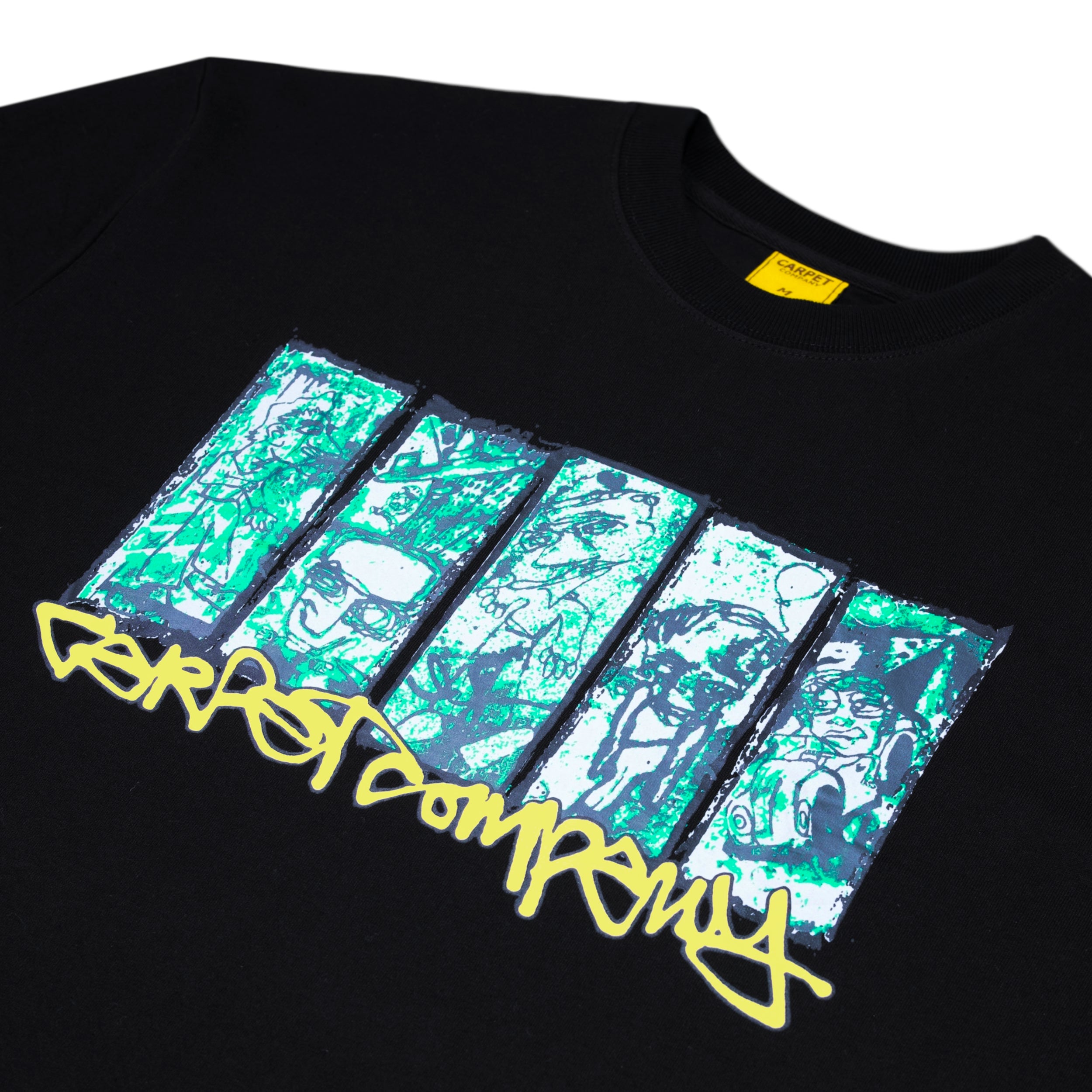 From the front, it’s stealth. From the dark, it’s something else entirely. The City Tee in Black by Carpet Co features glow-in-the-dark artwork that flickers to life like a neon sign that hasn’t been serviced in years. It’s subtle until it isn’t.