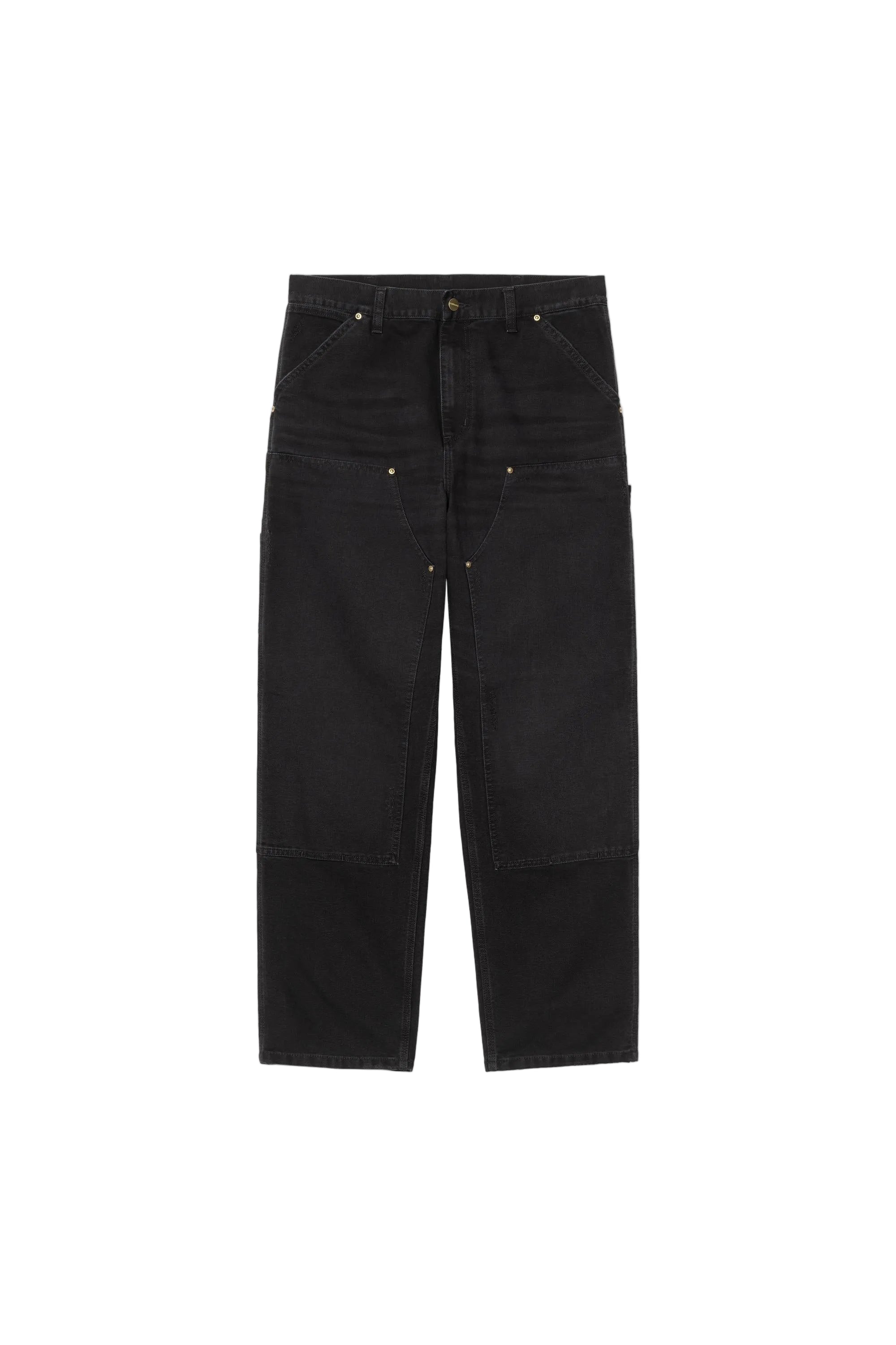 The Carhartt WIP Double Knee Pant in Black (Grind Wash) is a study in restraint. Workwear bones, city manners. Cut in heavyweight Dearborn Canvas, the fabric starts structured and relaxes over time, picking up character instead of fuss. The grind wash gives the black a lived-in depth, like it’s already been places and didn’t feel the need to mention it.