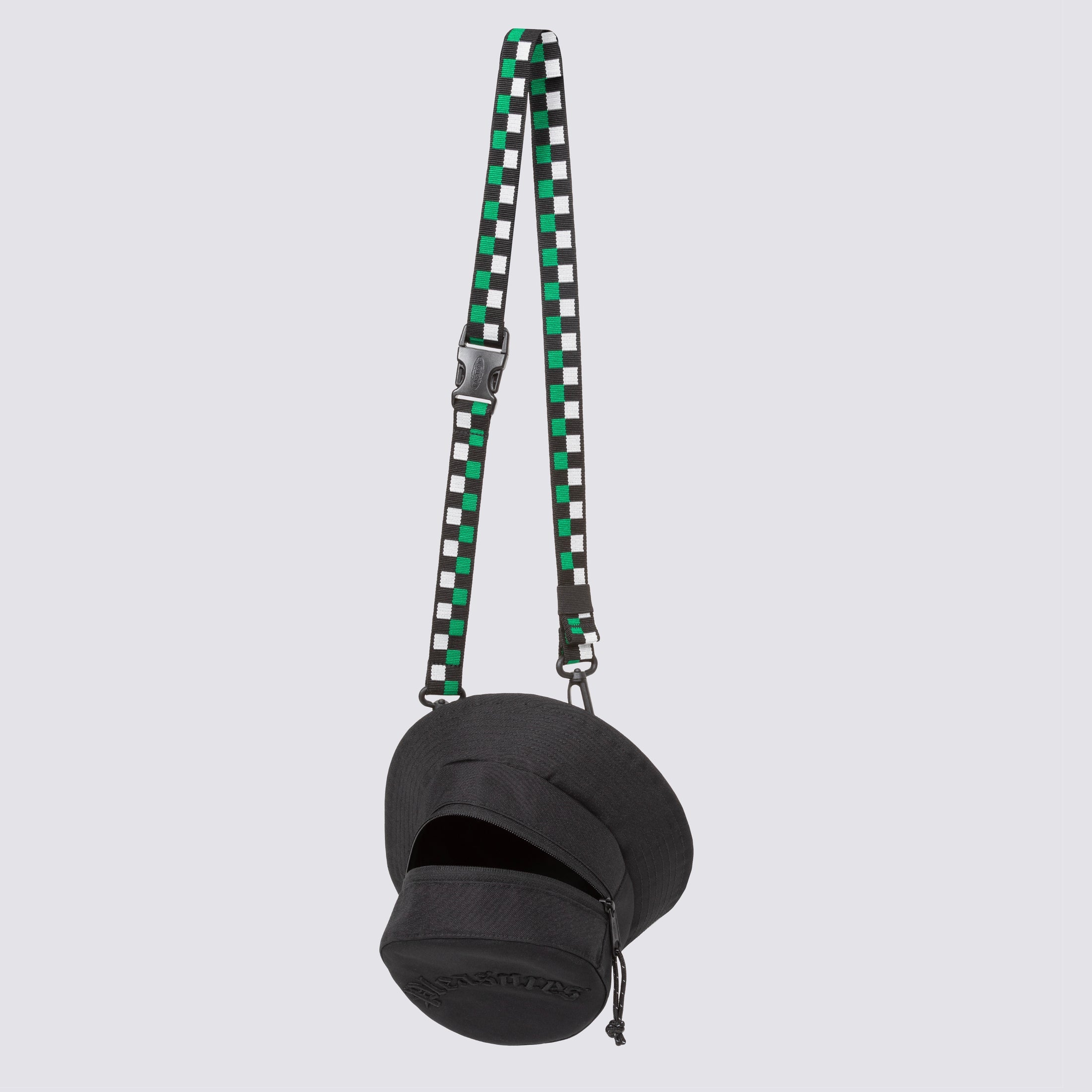 - This exclusive bucket hat design can be worn as a hat or used as a crossbody bag using the detachable cord and zip-fastening compartment.