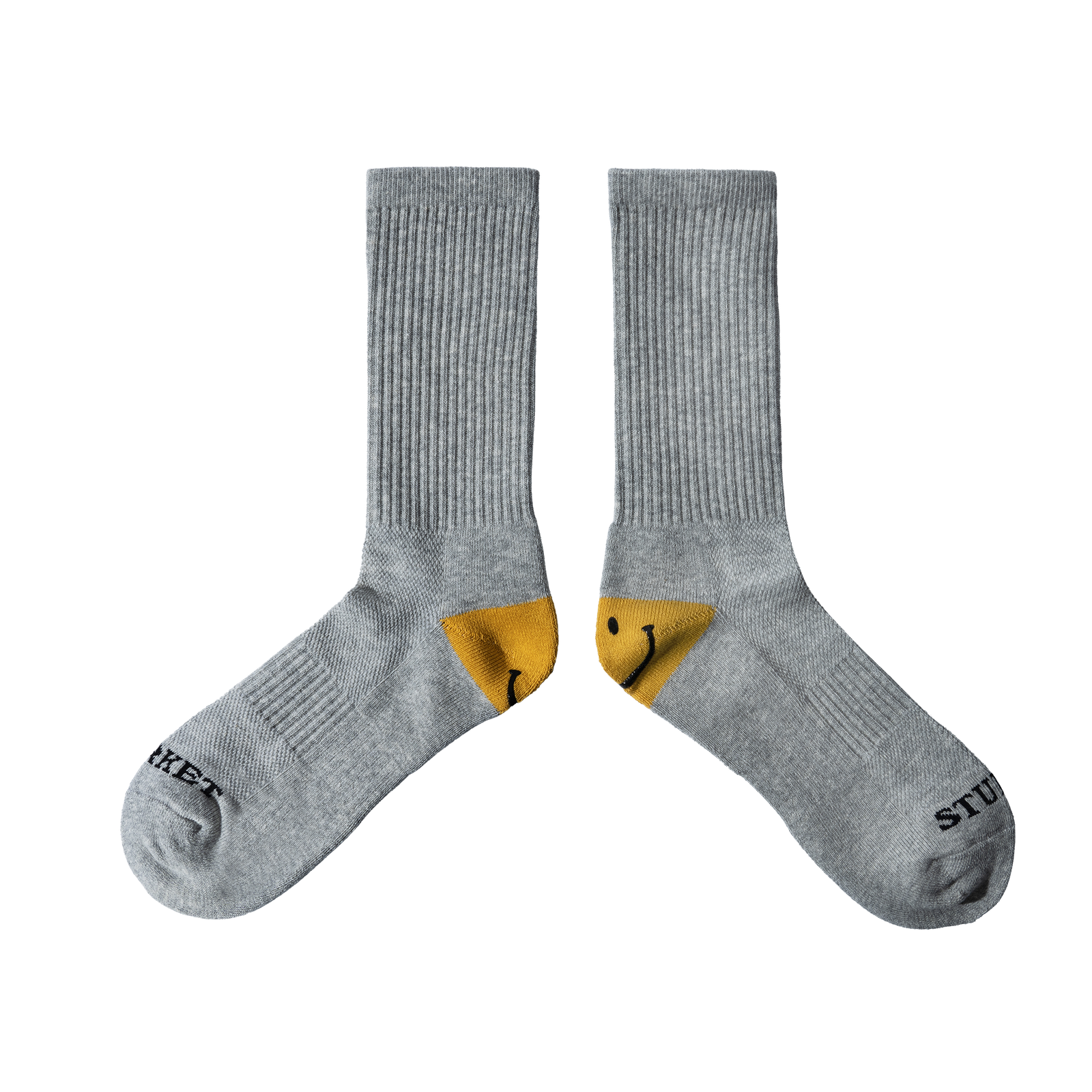 The Smiley Heel Socks in Grey are quiet comedians, dry in tone, soft in texture, and always ready with a grin. Made from a cotton/spandex blend that stretches without slouching, they deliver comfort with character. The yellow heel smiley adds a flash of absurdity to an otherwise unbothered palette. Crew length, one‑size‑fits‑most, and subtle enough to pass inspection in serious outfits, until you take your shoes off.