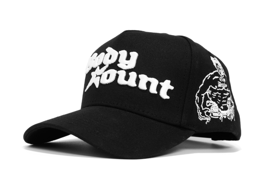Classique dans sa forme, mais pas dans son attitude. La calotte est structurée, la visière pré-courbée juste assez pour rester pratique. Le graphique "Body Count" est placé à l'avant et au centre, réalisé avec cette touche inimitable de Carpet Company.
