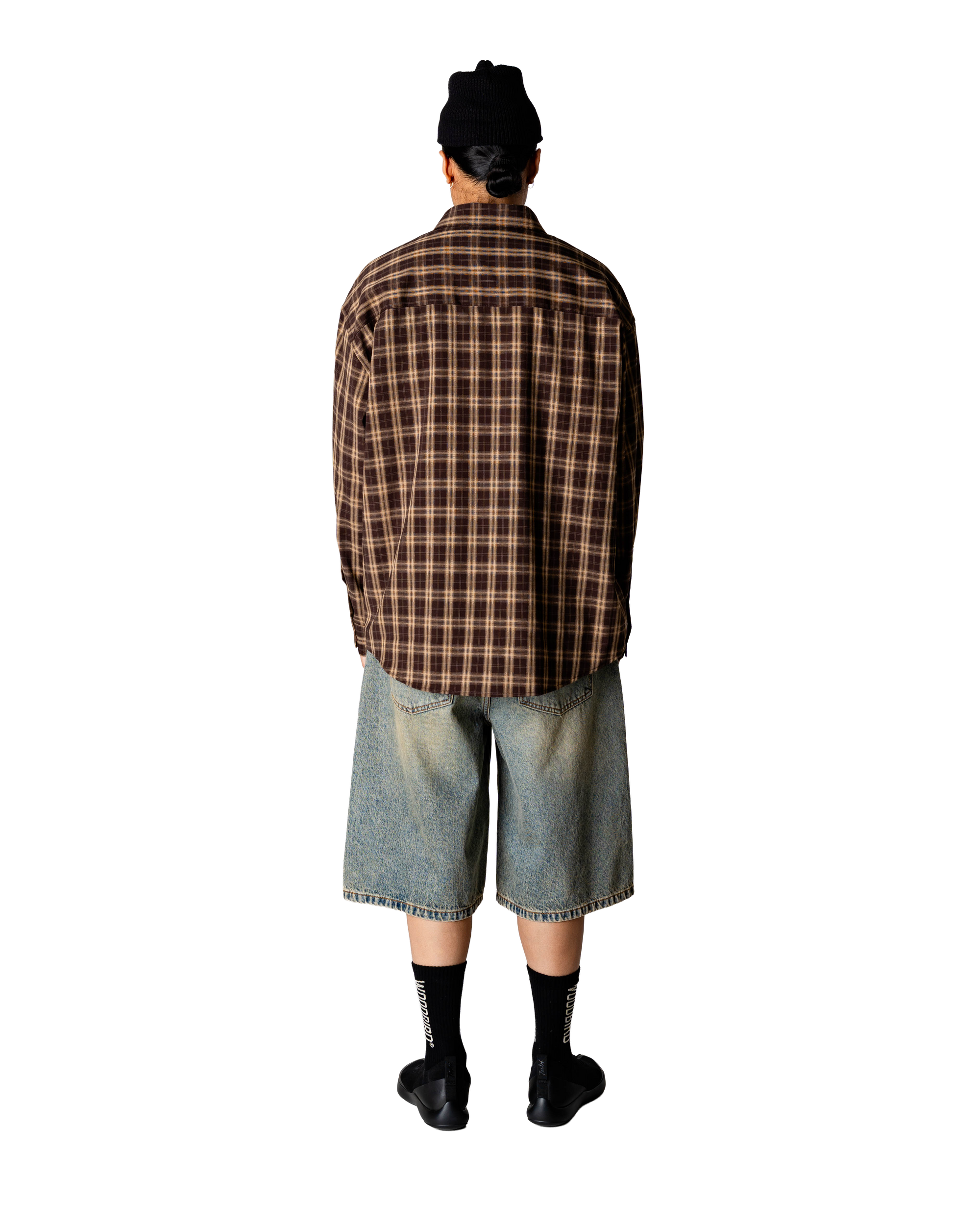 La lumière du soleil traverse la fenêtre d'un café tranquille, tombant sur la chemise Woodbird WBJONG Dobby Check posée sur une chaise en cuir usé — ses carreaux bleu clair délicats évoquant un charme sans effort, des conversations calmes et le confort d'une chemise parfaitement coupée.