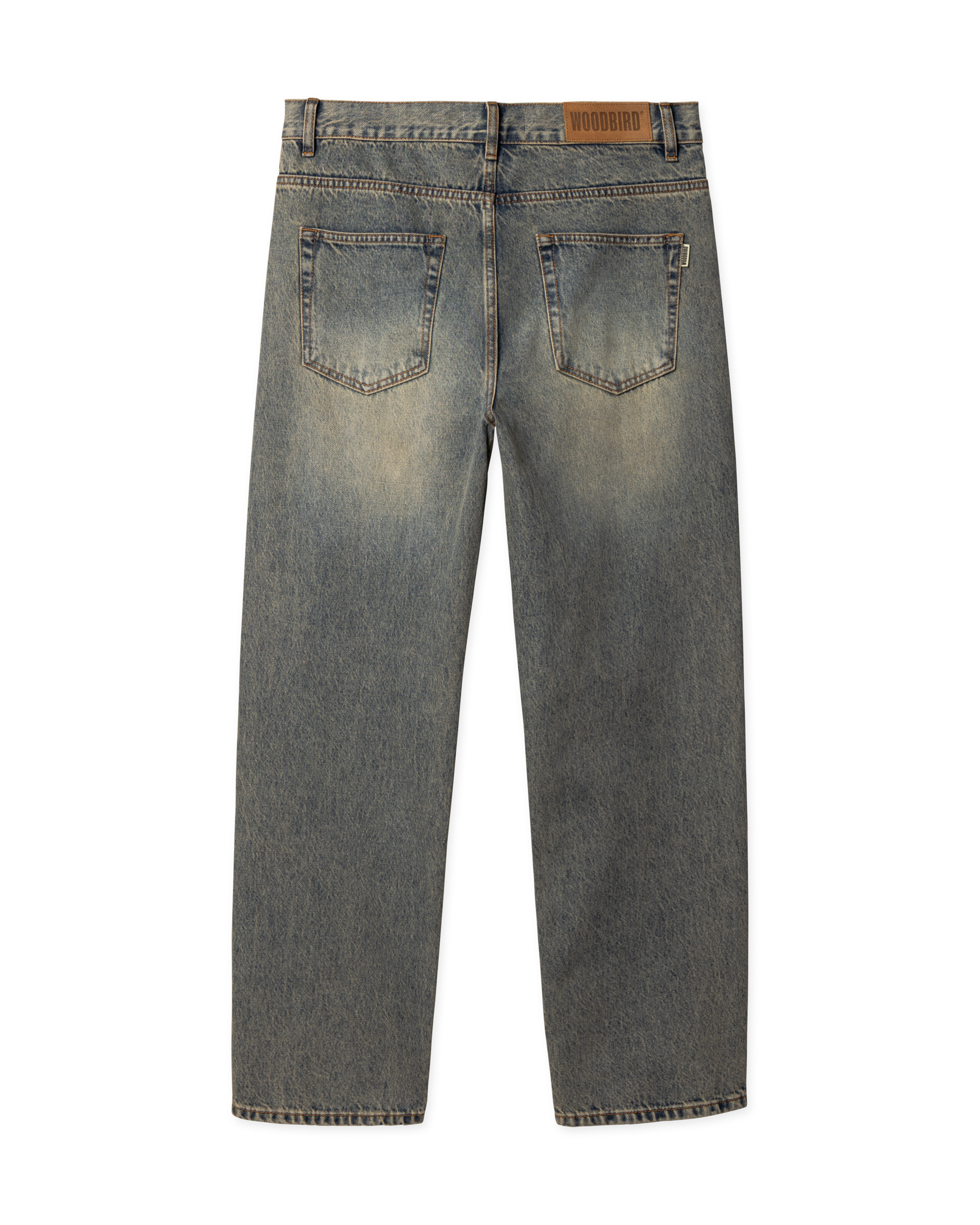 Le jean vieilli WBLeroy donne l'impression d'avoir déjà été porté. Le délavage est présent sur le devant et l'arrière, non pas décoratif, mais simplement vécu — comme s'il avait connu quelques longues journées et avait su garder sa contenance tout au long.