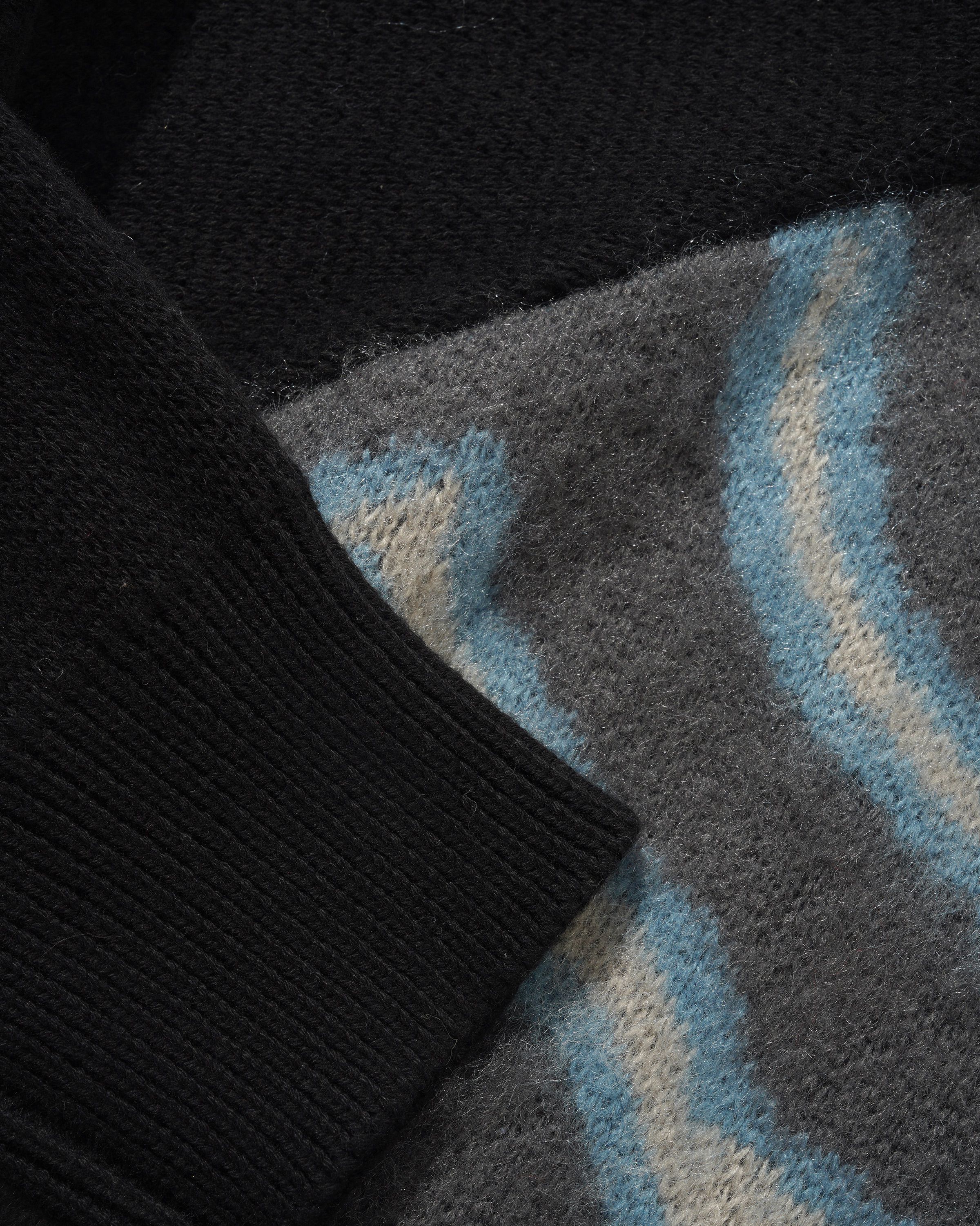 The Beetle Zip Thru Knit Sweater (Black) by Butter Goods channels mid-century cool through a skater’s lens. Knit with a bold beetle motif, it feels both playful and deliberate—like a sweater borrowed from someone who reads philosophy but still lands a kickflip. The zip-through front and soft knit construction make it easy to layer, move, and disappear into the night unnoticed.