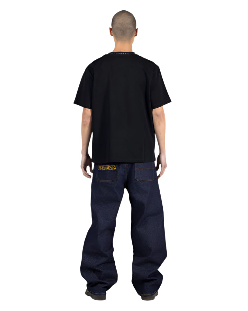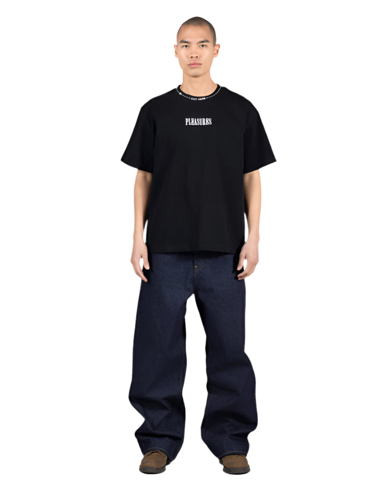 The Pleasures Cut Here Heavyweight Shirt in Black is a masterclass in understated rebellion. Crafted from 100% heavyweight cotton, this shirt offers both comfort and durability. The enzyme-washed fabric provides a soft, lived-in feel, making it an instant favorite in any wardrobe. The shirt features cheeky artwork at the neck and high-contrast logo embroidery, bringing the brand's signature street-savvy vibe to this heavyweight cotton jersey T-shirt.