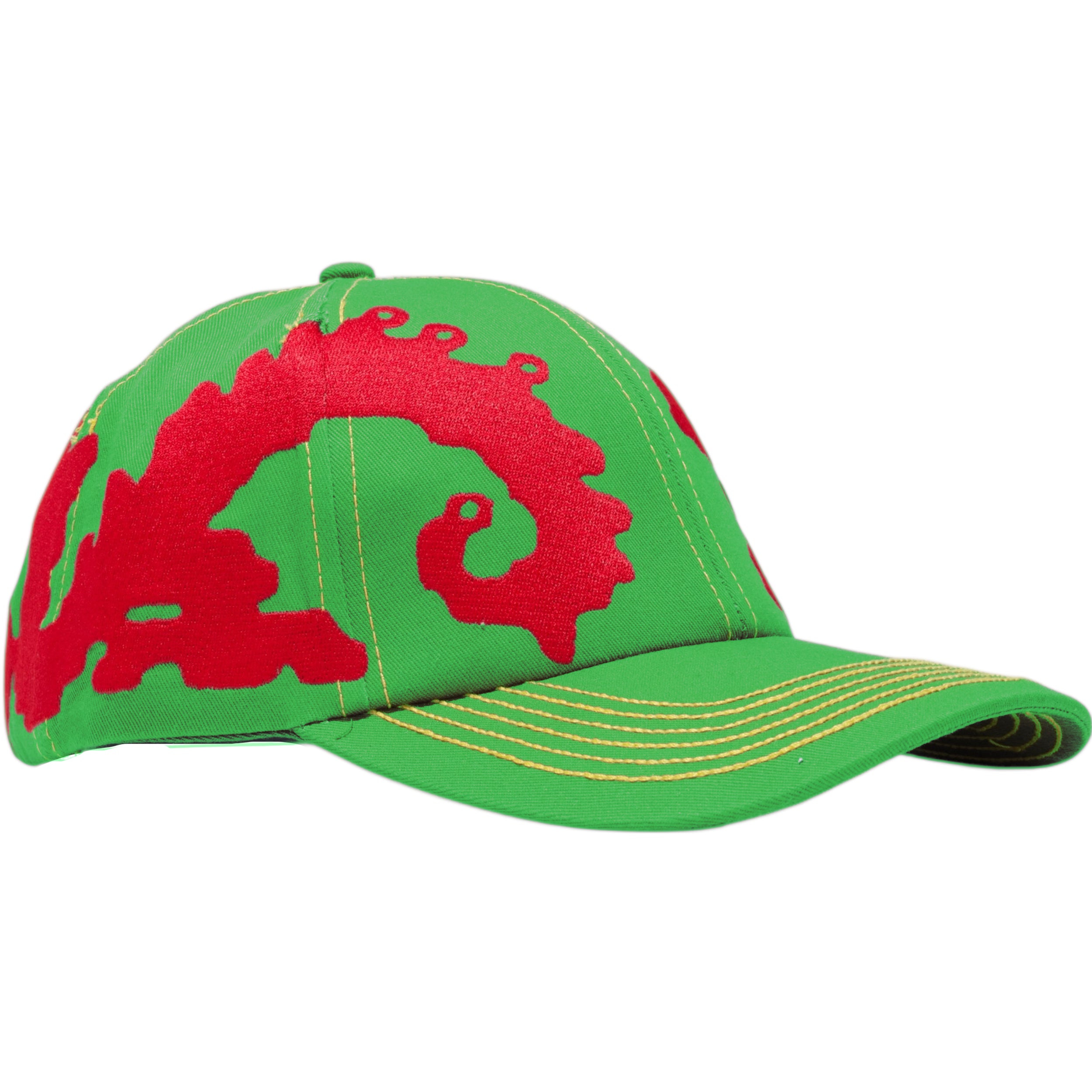 Somewhere in a washed-out VHS tape of a Cairo street scene, graffiti dragons slither across stucco, sits the Carpet Company Dragon Hat in Green, leaned back on a dusty Vespa, judging your whole outfit and maybe your whole life.