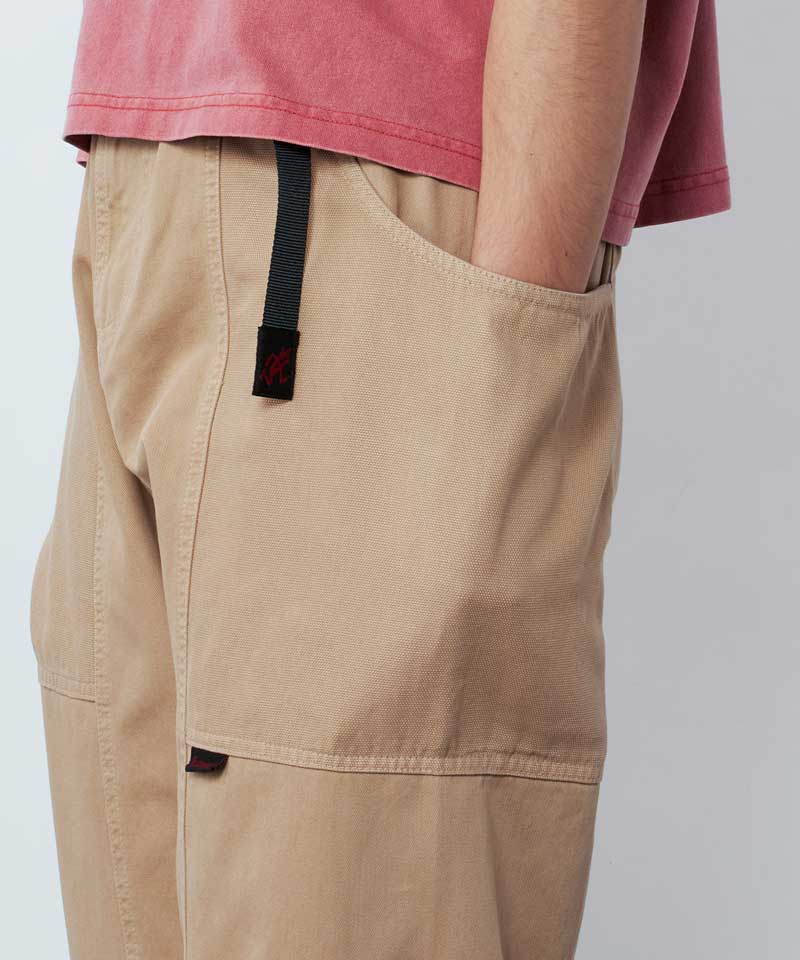 Elastic waist with integrated nylon belt and buckle — Gramicci’s iconic one-hand adjustable system