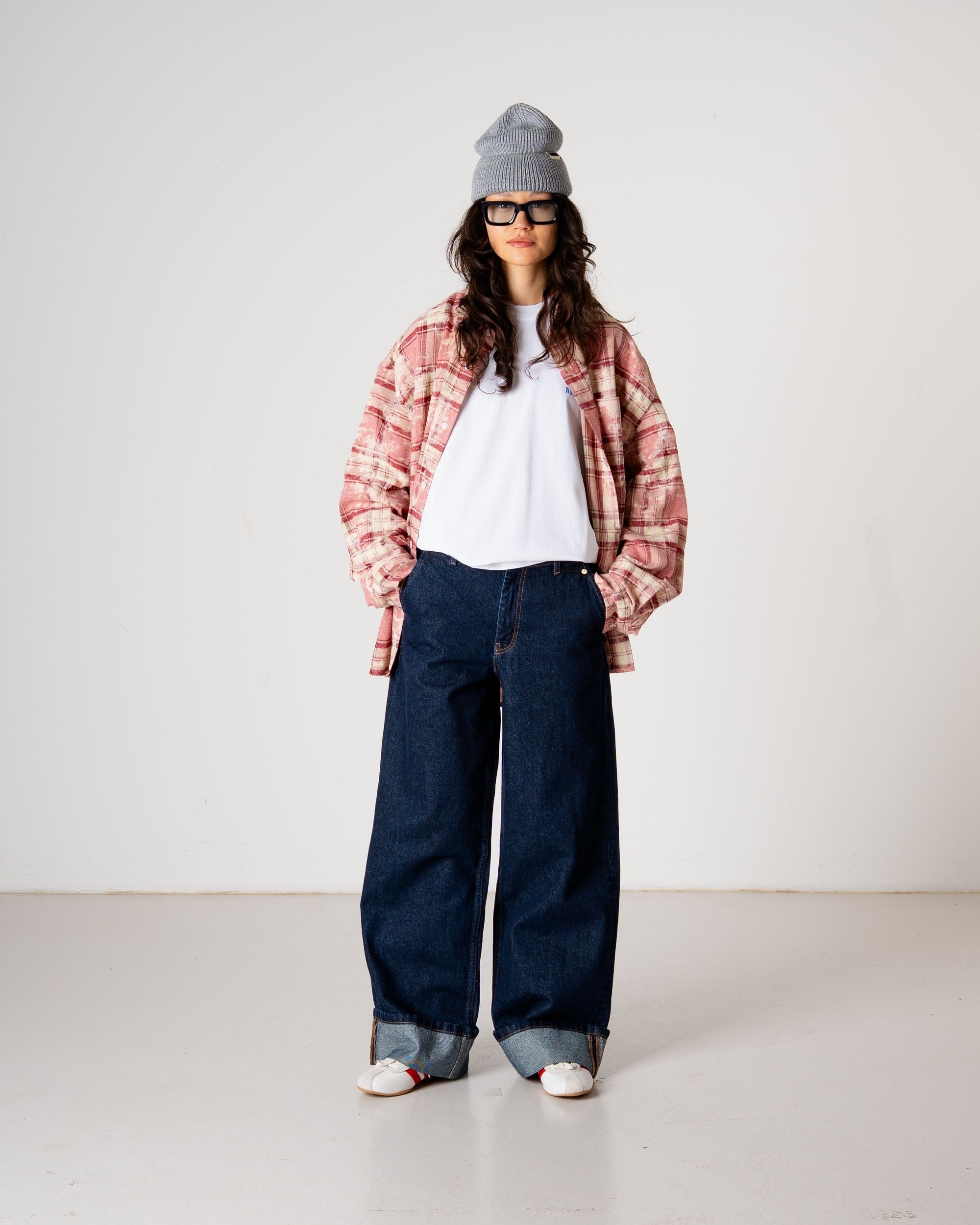 The Jong Dull Shirt in Dusty Rose is a flannel conversation starter, toned down to near-silent. The familiar check pattern lives in a paler, bleached hue—soft, wistful, and softly ironic. Crafted from 100 % cotton, it drapes with easy authority. Button front, classic collar, and a modest chest pocket complete the package. Ready for late-night philosophical detours and decisions that start with “why not?”