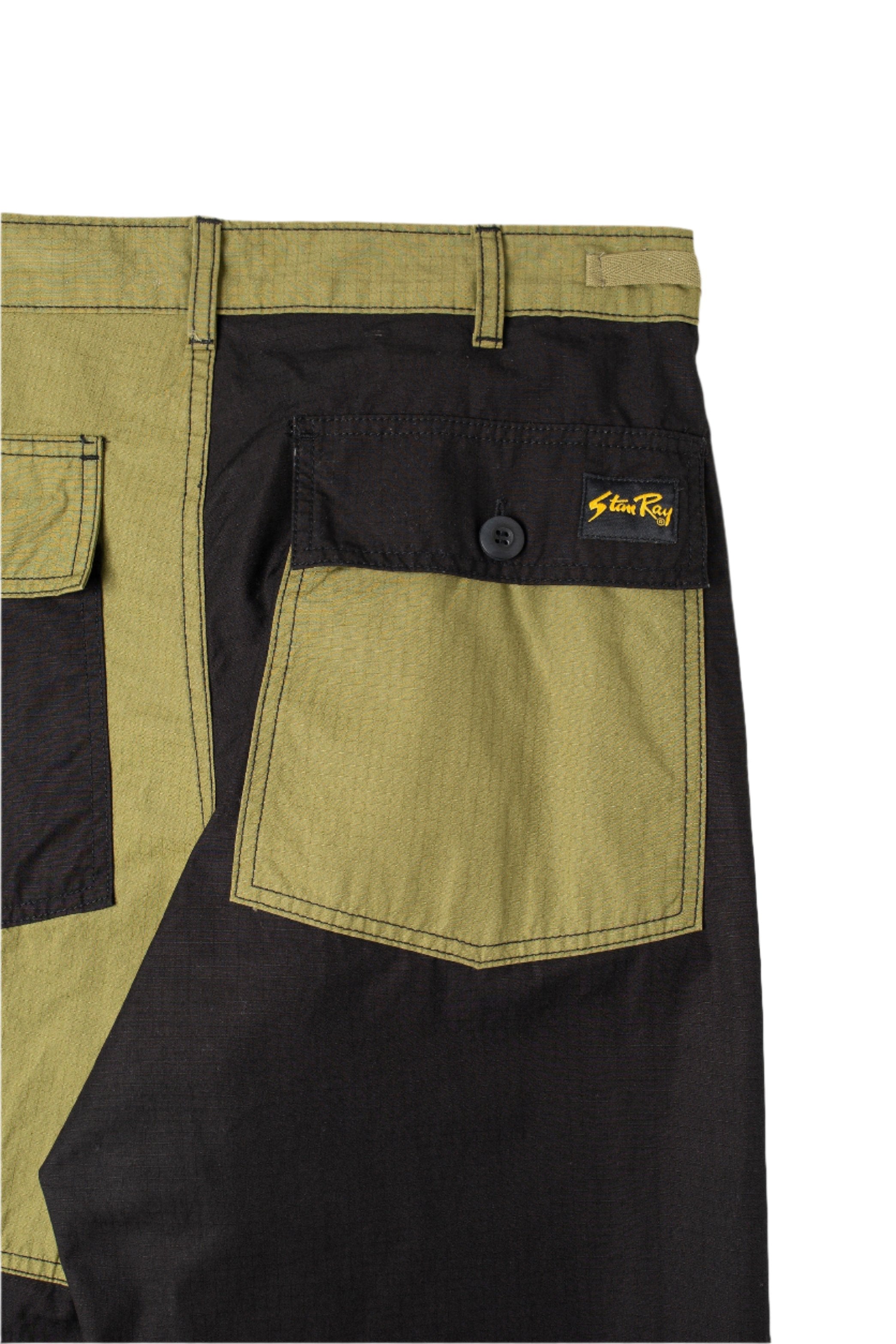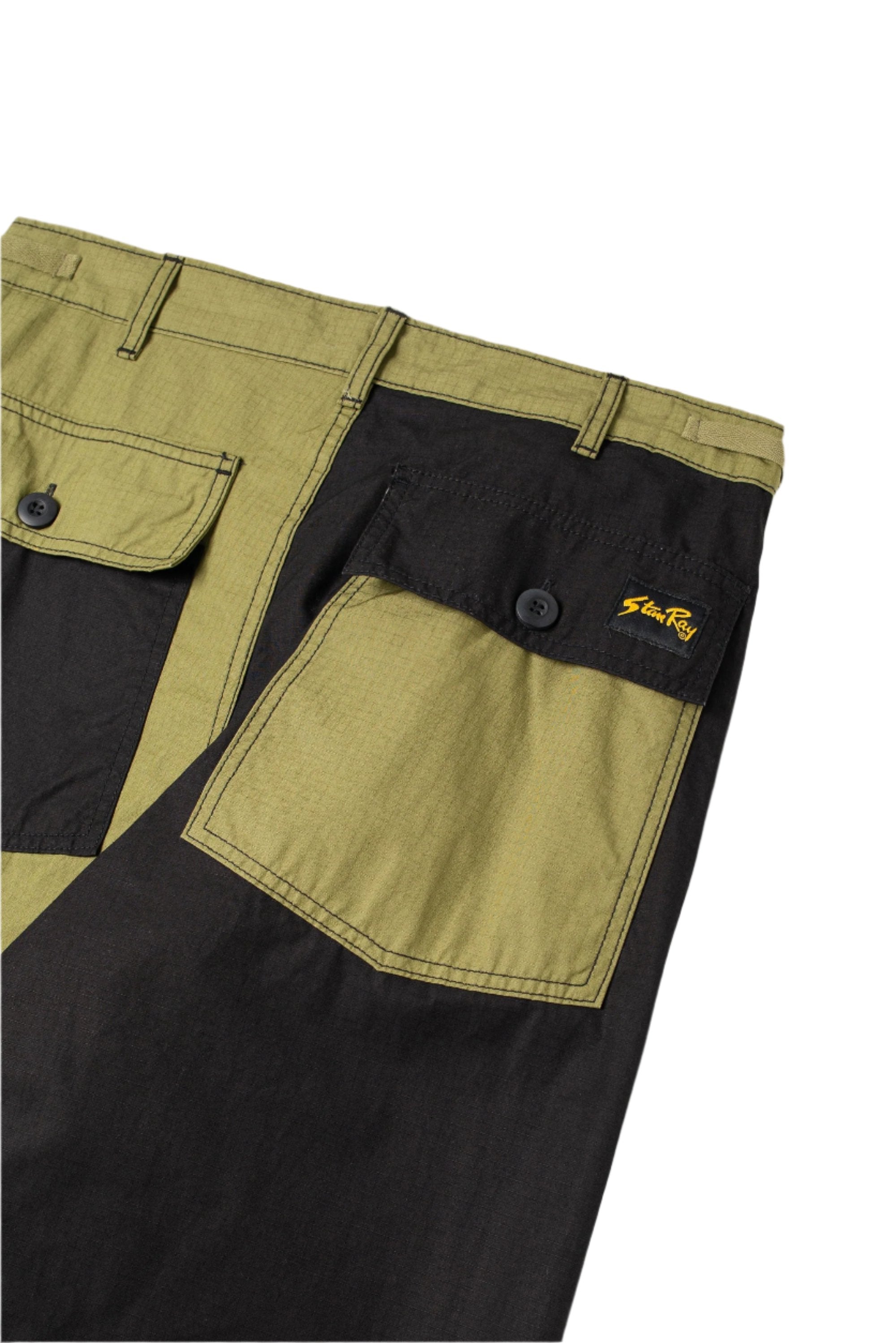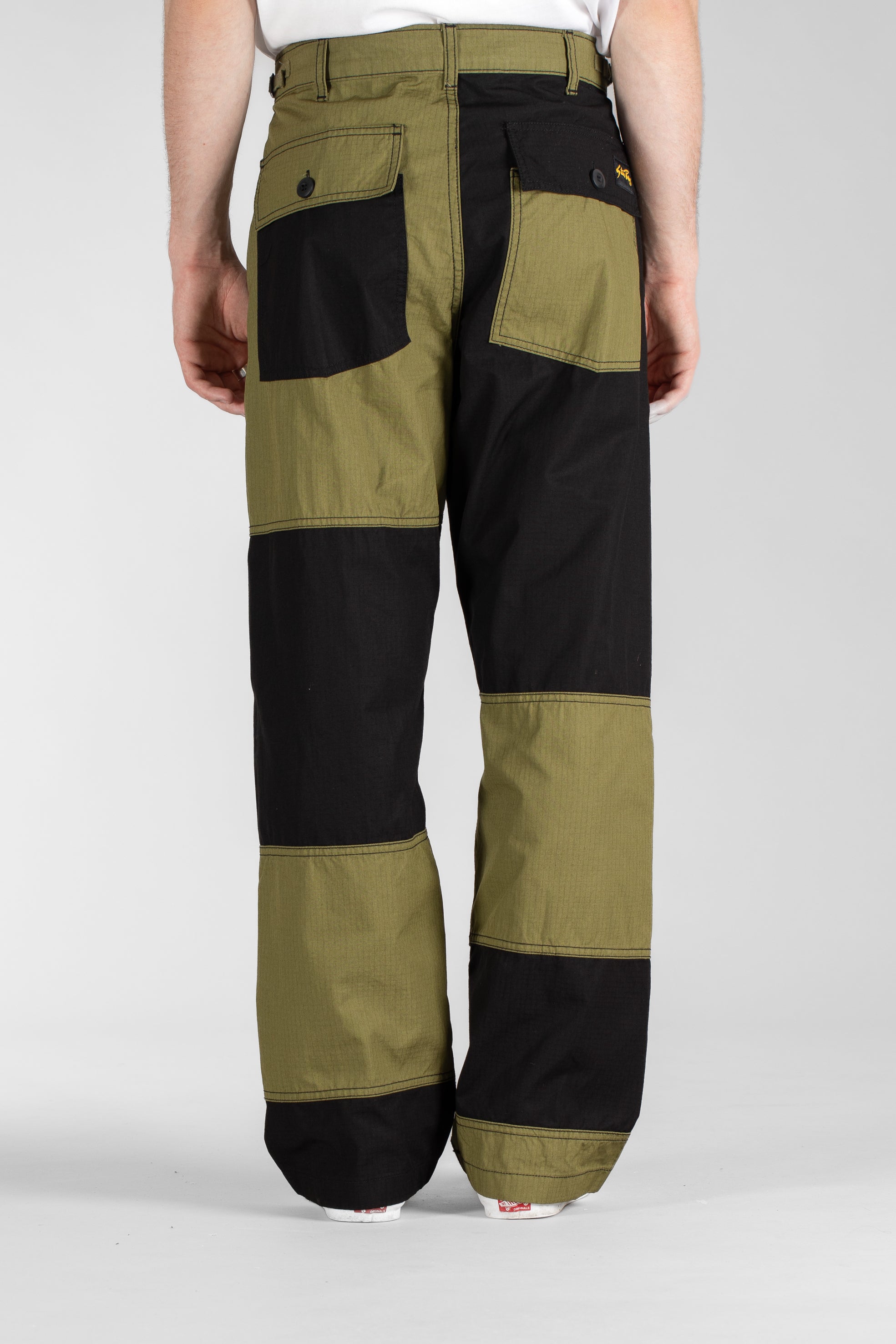 The K-Pant is new for AW24 based-off Stan Ray's straight fatigue but in a new looser fit. Featuring a waist synch, military button fly and patch pockets. Everything you would expect out of a military fatigue. Seen here in Black ripstop mix and Black sateen panels.