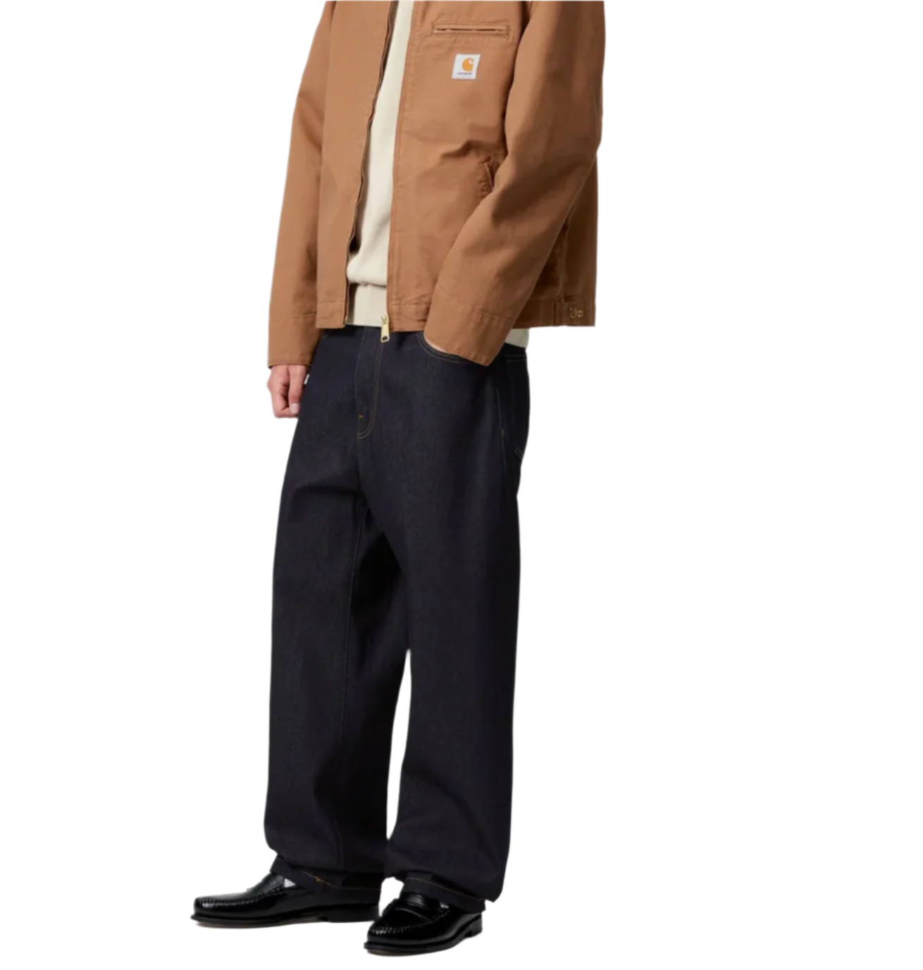 Construction Details: Five-pocket styling, button fly, triple-stitched seams for durability, square Carhartt label on back pocket