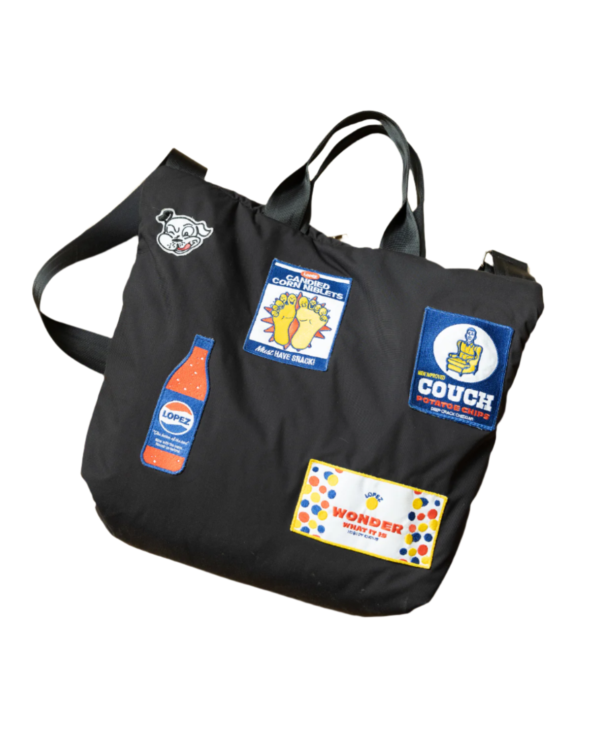 Design: Fully reversible mood—clean panel on one side, patch-loaded chaos on the other