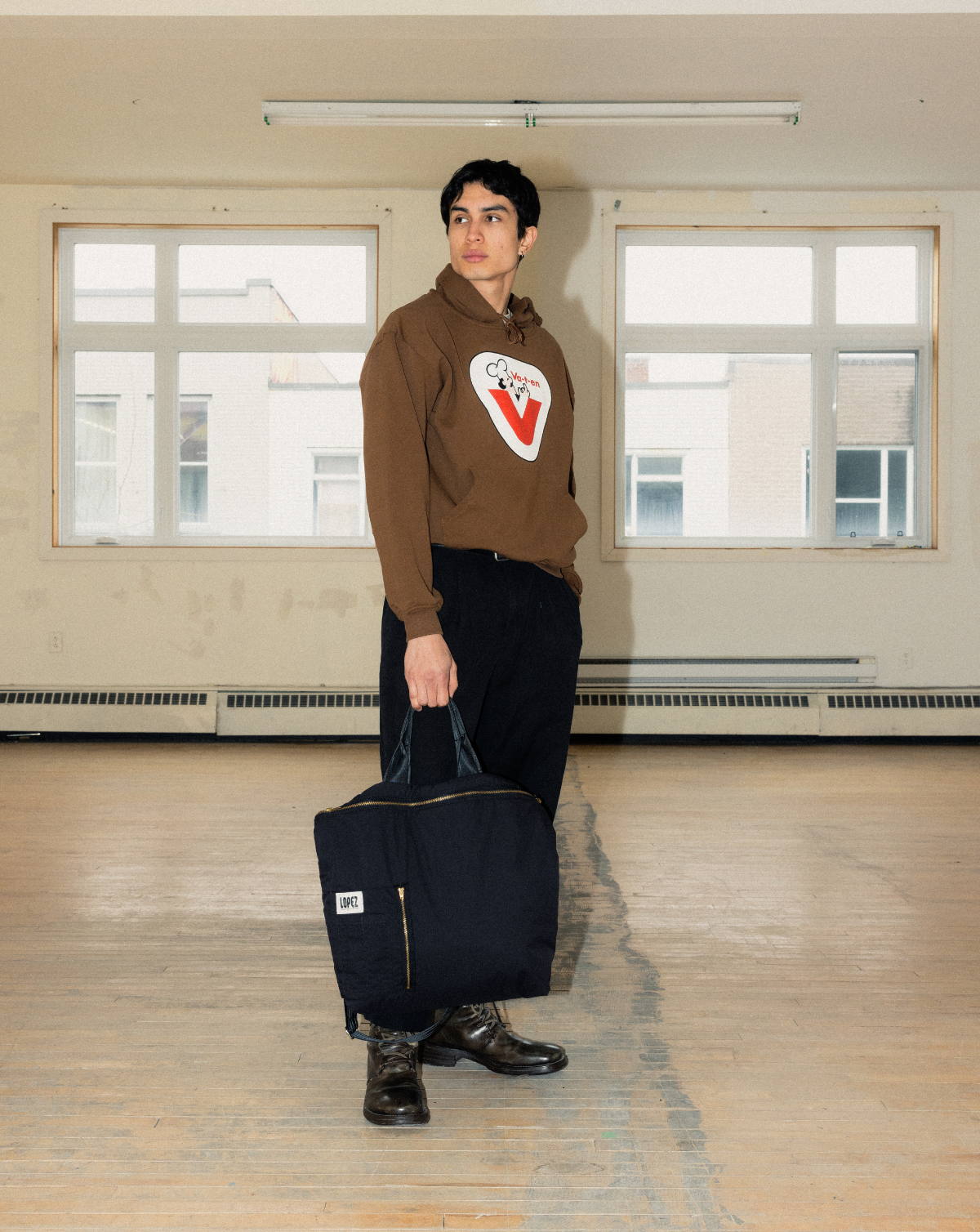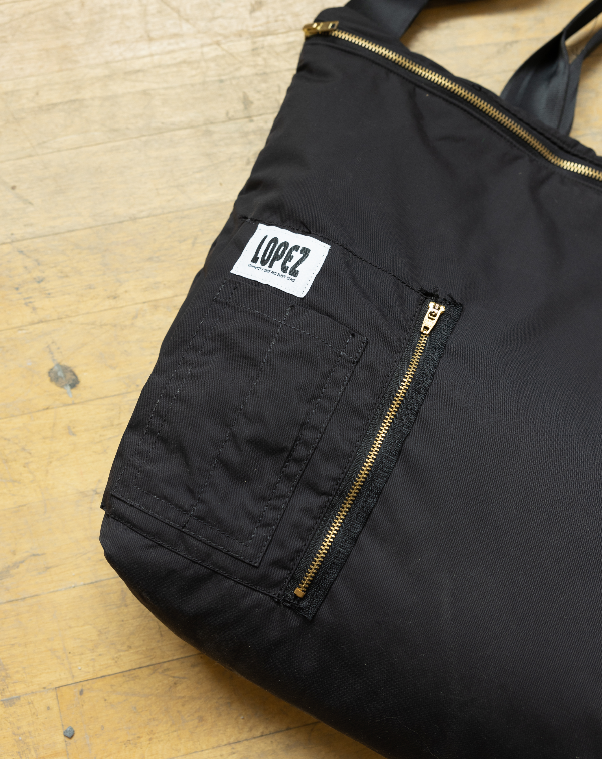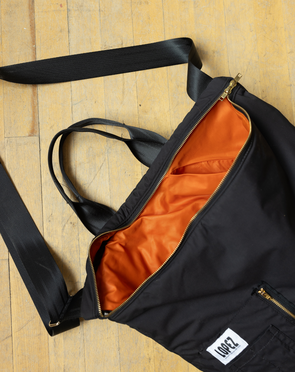 Built in Montreal. Inspired by flight jackets and the kind of conversations that happen under flickering street lamps, the Lopez MA-1 Bag reimagines a military icon as your everyday carry. Cut from waterproof nylon—just like the jacket it's modeled on—this bag handles weather, weirdness, and whatever else you throw its way.