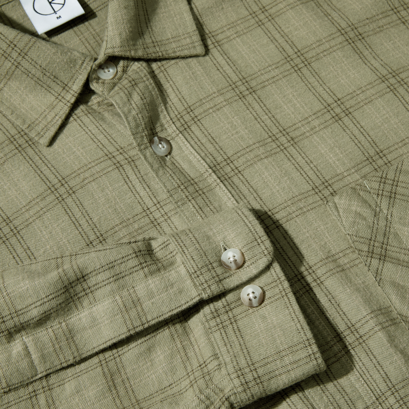 The Mitchell Long Sleeve Shirt in Green Beige sways gently in the breeze as someone adjusts their cuffs, the soft earth tones blending seamlessly with the natural surroundings. Practical yet refined, it’s the perfect shirt for adventure or relaxation.