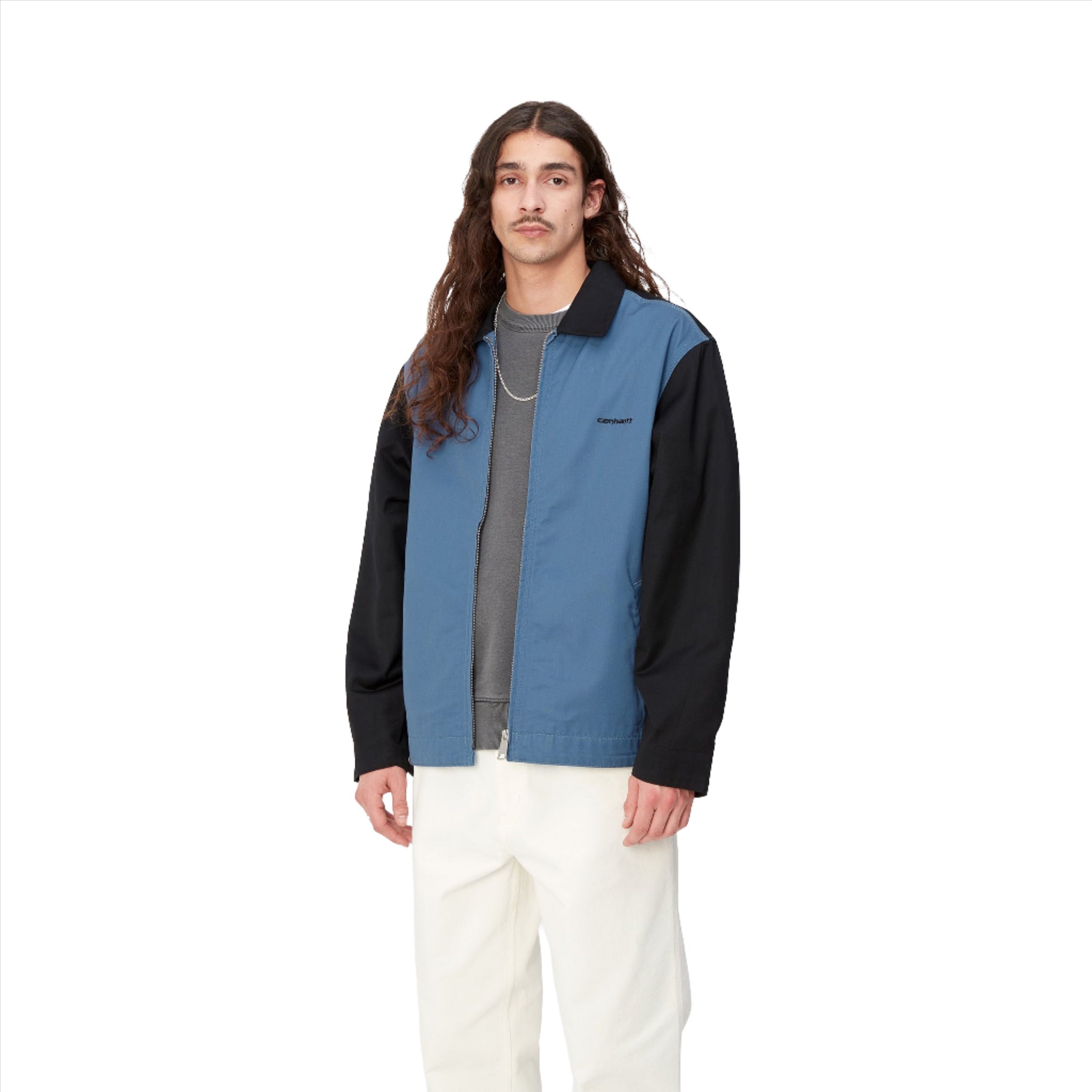 The Module Script Jacket is made from midweight polycotton twill and is unlined. It also has a zip front closure. The jacket features two front welt pockets and is detailed with an embroidered Script Logo on the chest.