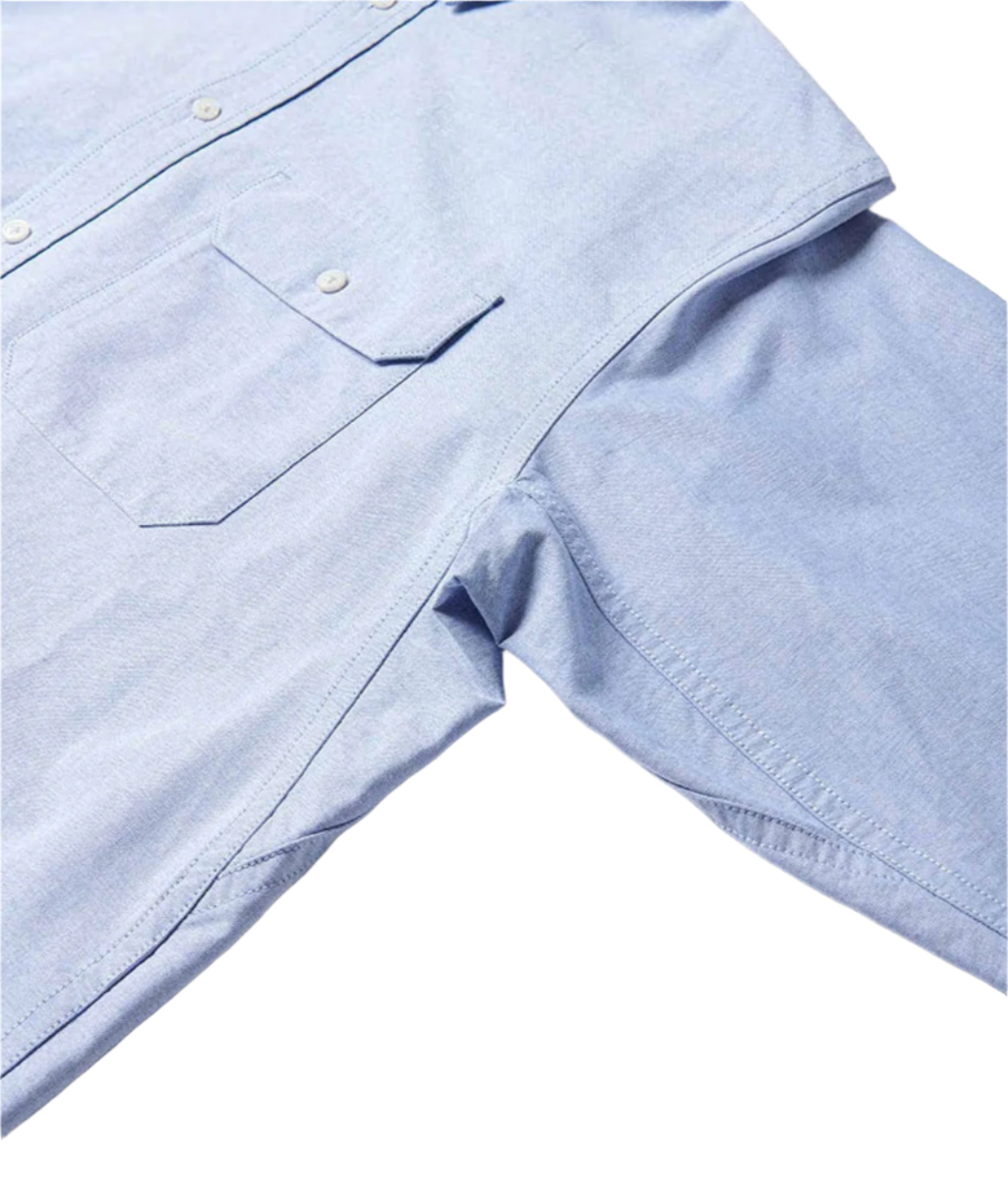 Sky Blue gives the Gramicci Oxford Stance Shirt a crisp, nostalgic charm—like your favorite prep-school uniform, if it had better stitching and was built for movement. Made from 100% cotton Coolmax with built-in UV protection, it’s breathable, functional, and strangely comforting. A button-down collar keeps things tidy, while a chest flap pocket and underarm gussets add practical touches for motion and storage. It’s built to look sharp without acting like it knows it.