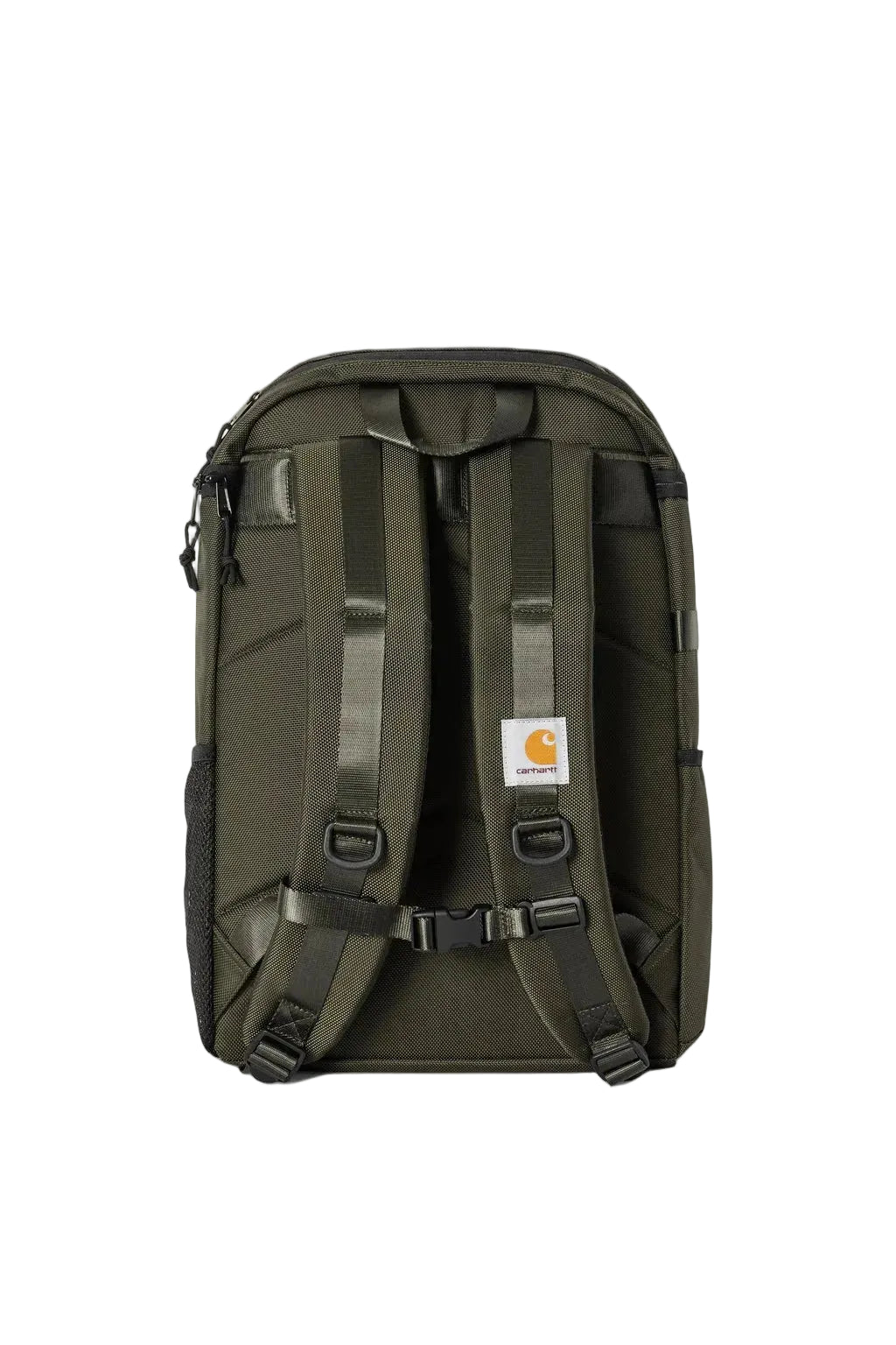 The Prescott Backpack is made from a heavyweight, lined nylon fabric with water-repellent qualities. The item features a zipped main compartment and an additional zipped upper compartment. The item is also detailed with webbing tape throughout and plastic board clickers. A tonal Script Logo appears on Velcro® tape, while a woven Square Label completes the design.