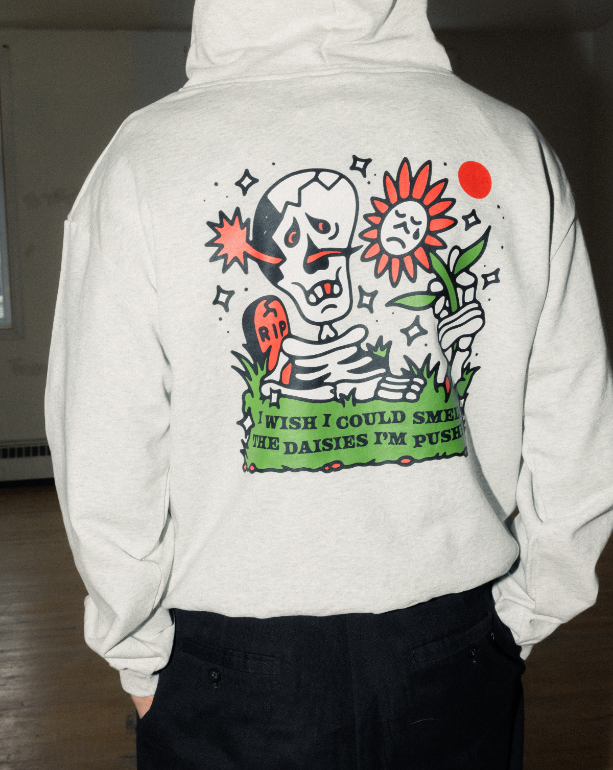 Pushing Daisies Pullover Hoodie - Heather Grey