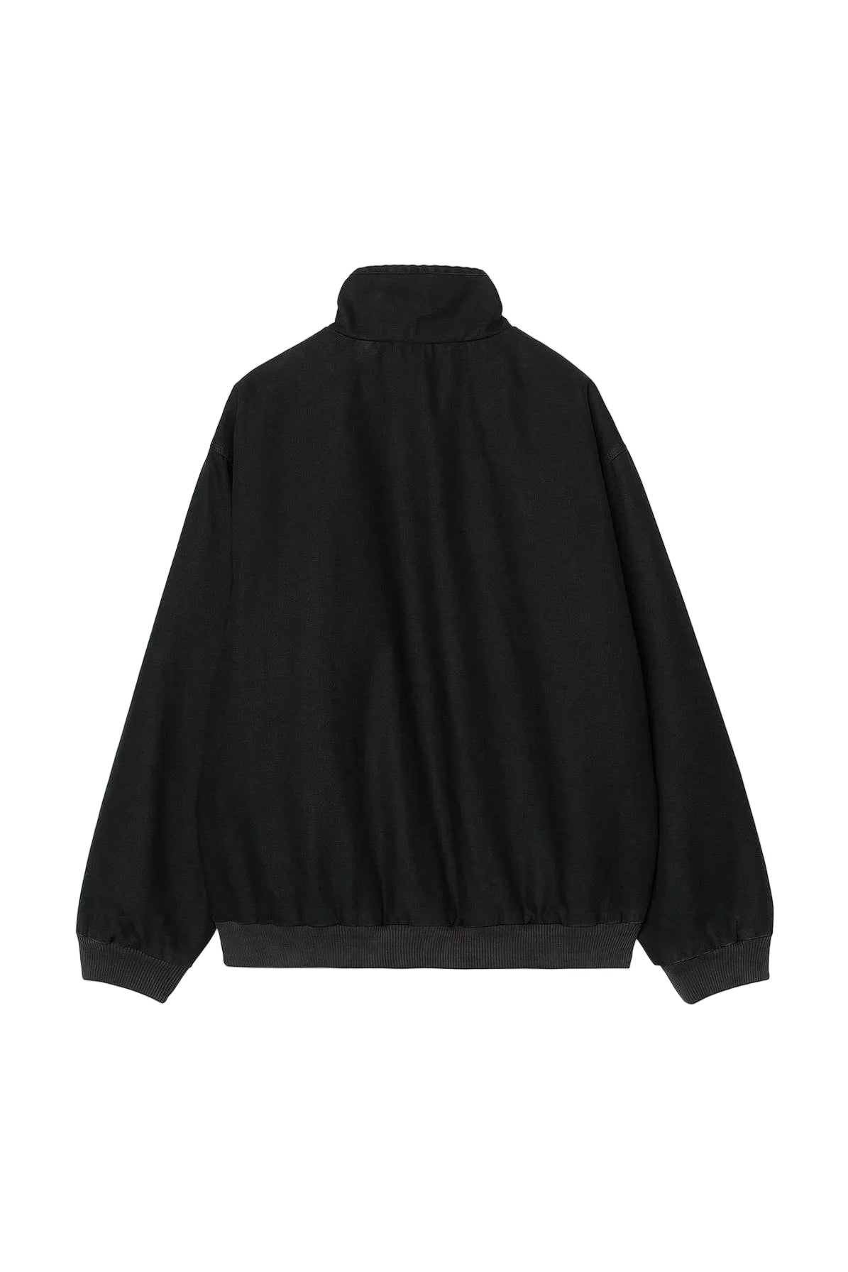 Cloud cover. Concrete steps still holding the night’s chill. The Carhartt WIP Ravon Jacket in Black (heavy stone wash) rests across the railing, sleeves bent at the elbow, as if it has been mid-conversation about something practical and slightly technical.