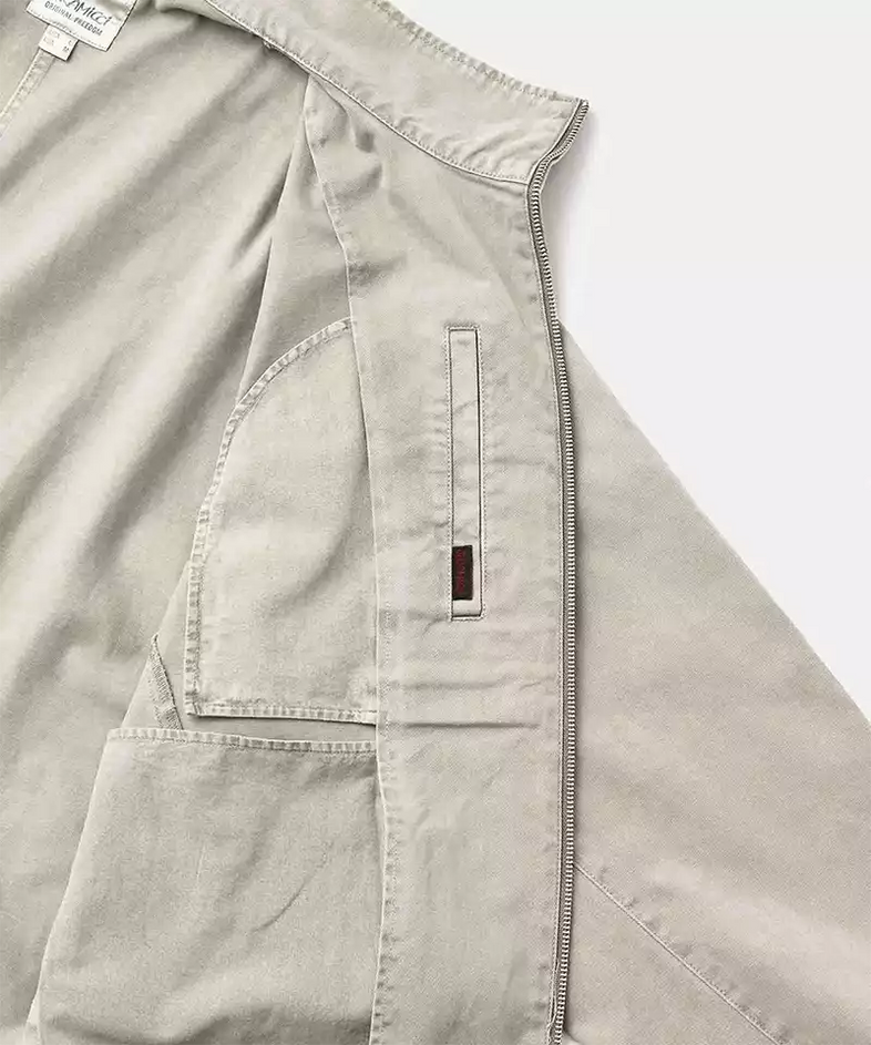 The Twill Around Jacket in Pigment Oat catches the soft light, its clean, neutral tone blending effortlessly with a casual yet refined outfit. Functional and stylish, it’s the perfect layer for transitional weather.