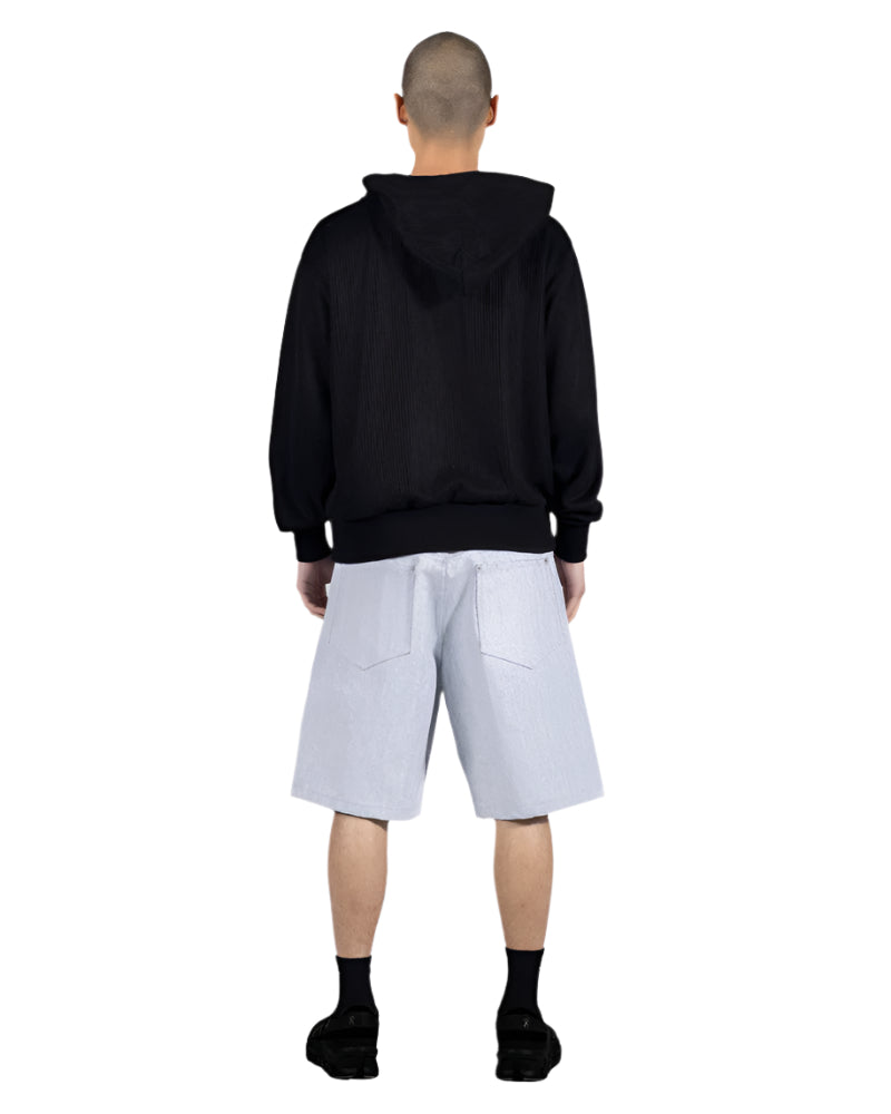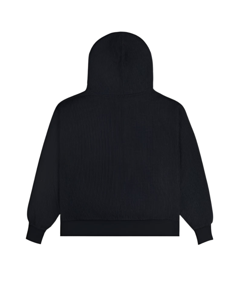 Closure: Equipped with an oversized double zipper detail complemented by contrast zipper tape, adding a modern twist to the classic hoodie design.