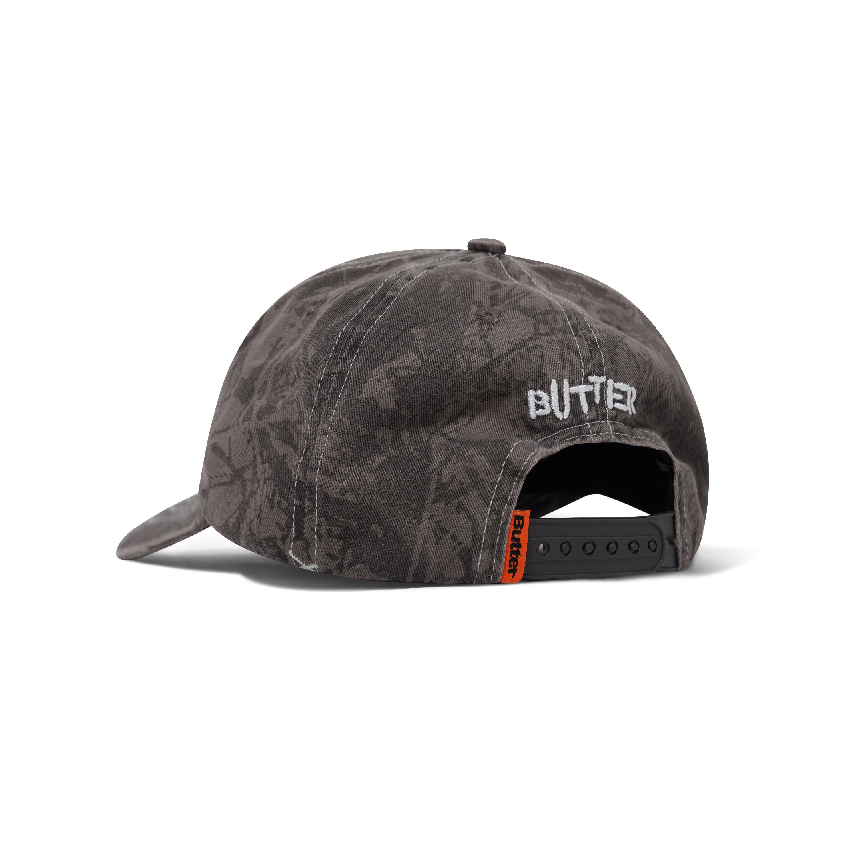 The Woods Camo 6 Panel Cap (Black) from Butter Goods blends utility with quiet confidence. It’s built from sturdy cotton twill in a subdued black camo print—urban camouflage for people who aren’t trying to hide, just keeping things low-key. Embroidered branding keeps it clean, while the adjustable strap makes sure it fits like it’s always been yours.