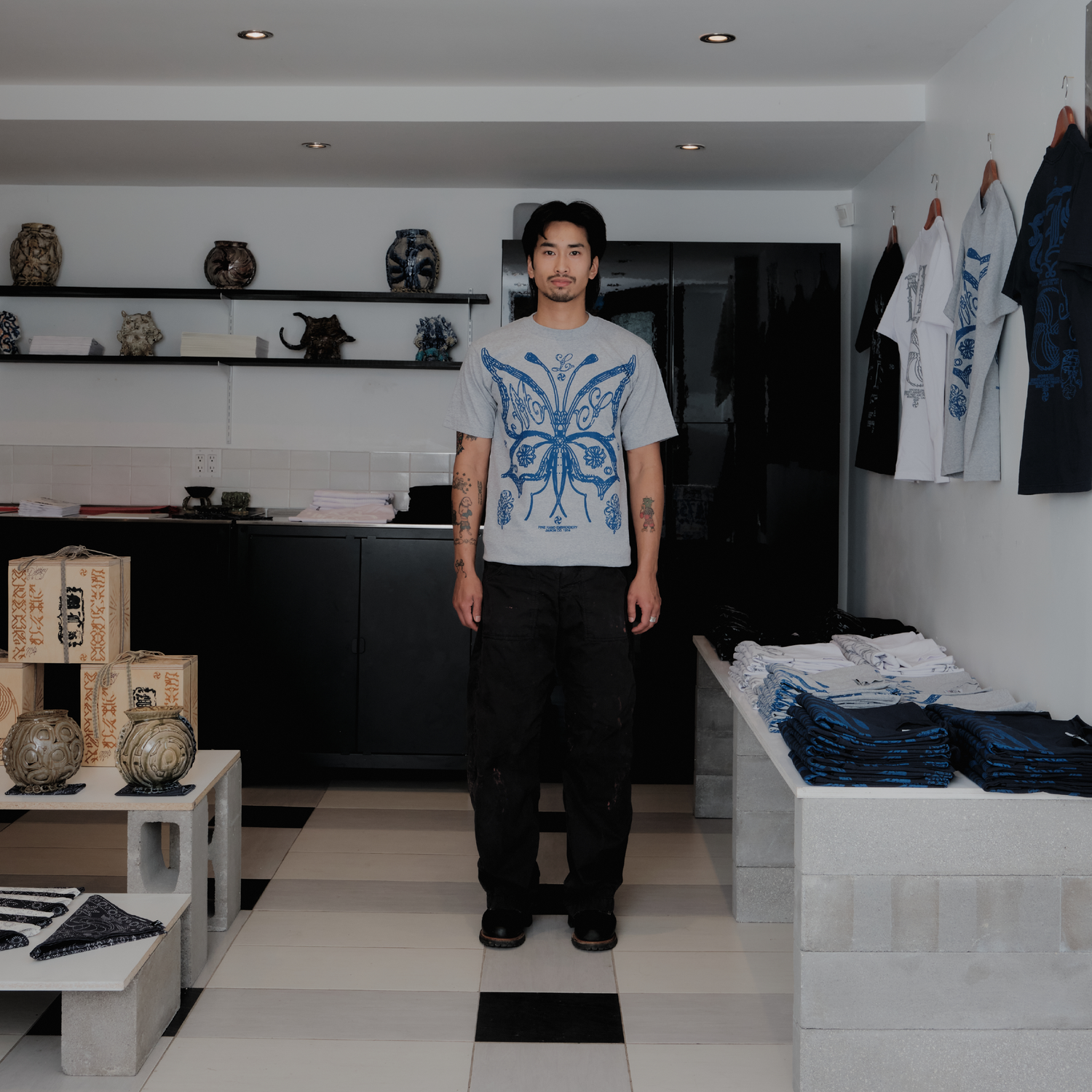In this grey edition, the Woven Butterfly Tee from MemoryLand Studio offers a softer backdrop for its flight. Made in Montréal from 100% cotton, the shirt’s surface is interrupted only by the navy screen‑printed butterflies, creating contrast without chaos. The true‑to‑size fit make it a reliable daily piece, while the design whispers of transformation and quiet rebellion. It’s understated, but never unnoticed.