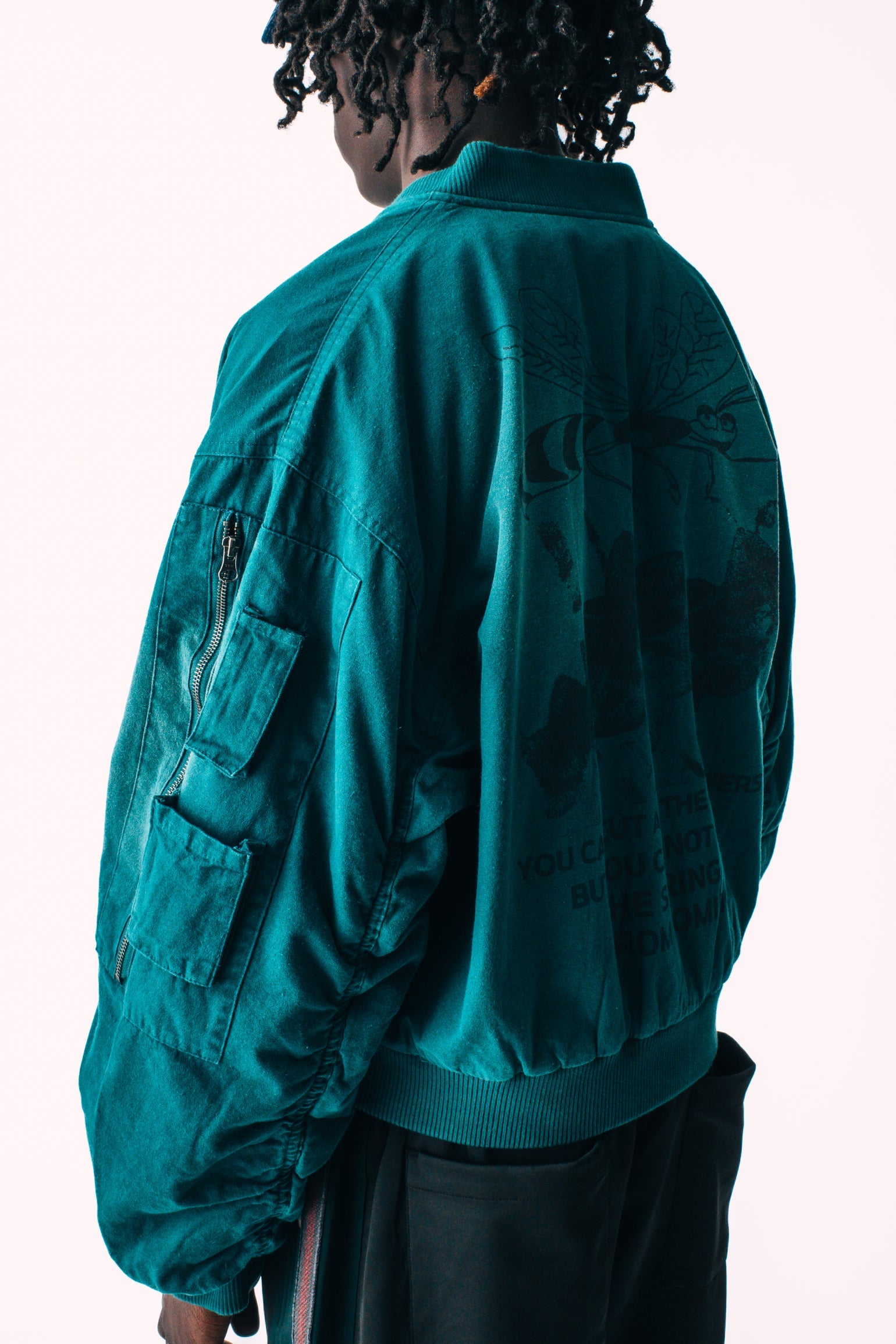 The All The Flowers Reversible Bomber from Jungles is a two-in-one outerwear piece that marries laid-back utility with poetic flourish. On one side, sun-faded canvas with subtle screen print and cargo-style zip pocket detailing nods to workwear heritage; flip it inside out to reveal a smooth satin face that slips effortlessly into more refined looks. Designed with a relaxed, boxy silhouette and ruched sleeve stitching, this bomber feels equally at home bracing brisk wind or cushioning a slow-paced evening coffee. Finished with functional pockets on both sides and a commitment to everyday versatility, it’s a jacket that rewards exploration in both design and wear.
